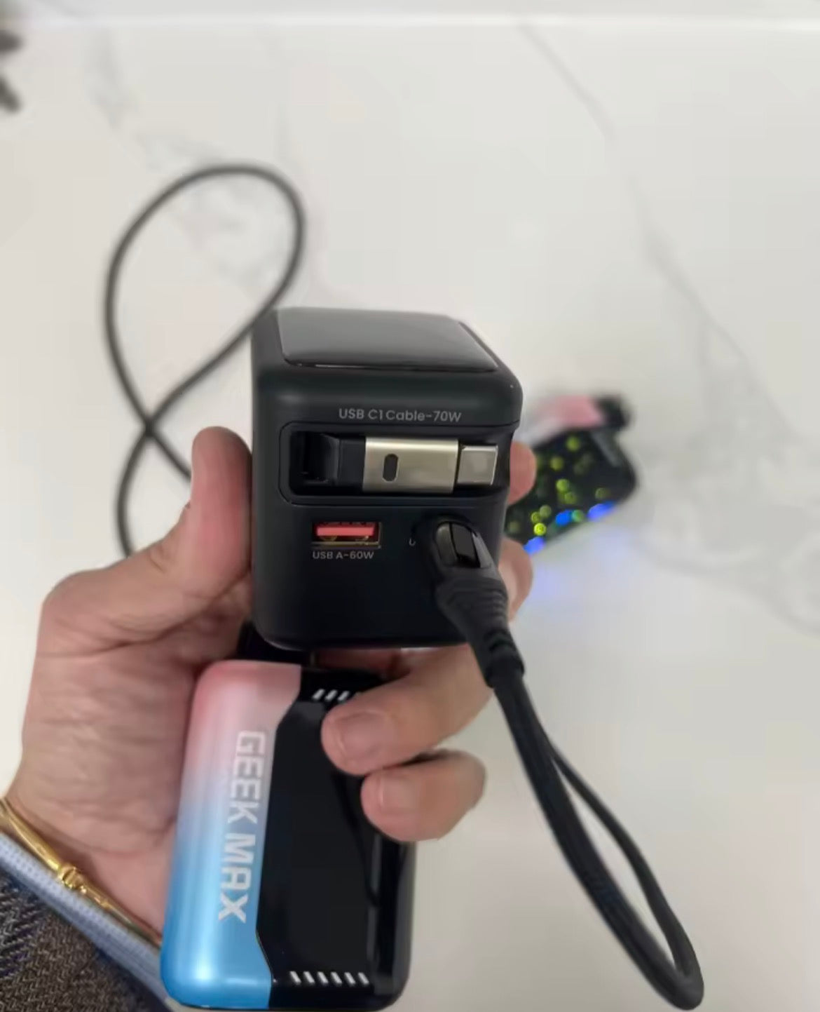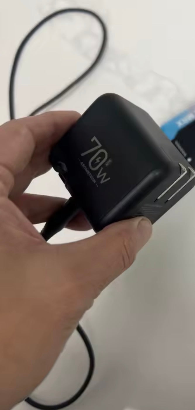 Streamline your daily carry with this 70W GaN charger featuring a built-in retractable USB-C cable. It delivers high-speed power to laptops and phones in a compact design that eliminates cable clutter forever.